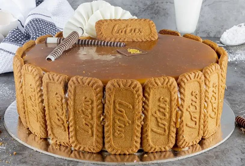 To make it even more decadent, the cake is lavishly topped with a glossy Lotus ganache, rich in texture and flavor, creating the perfect contrast of creaminess and crunch. Every slice delivers a beautiful balance of buttery softness, caramel spice, and biscuit aroma, making it an unforgettable dessert experience.
