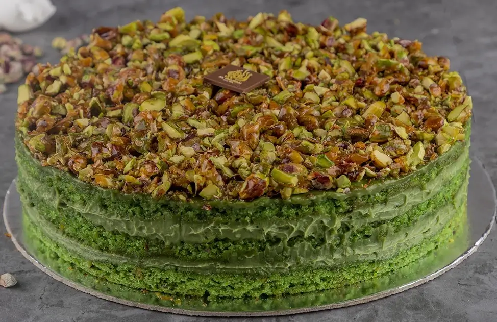 Step into the world of pure indulgence with our Pistachio Brulee Cake, a dessert that redefines elegance. This masterpiece features three layers of soft sponge, each infused with the subtle richness of roasted nuts. Between every layer lies a silky pistachio brulee cream, smooth as velvet and bursting with nutty sweetness that melts effortlessly on your tongue.